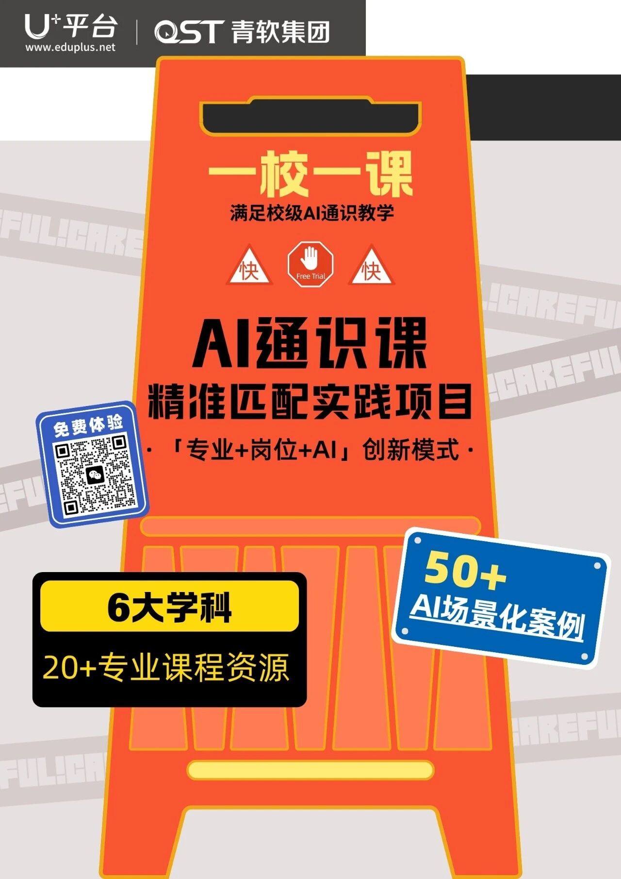 AI通识课落地难?资源不匹配、规模难兼顾、教学效率低?青软定制化方案来解决,三大核心优势带您高效开启AI通识课堂!<br><br>[得意]「一校一课」,已有课程/教材可精准匹配实践案例,「专业+岗位+AI」创新模式适配多样需求,6大学科50+场景案例、20+专业课程资源,定制课程不费劲。<br><br>[得意]「Agent引导」,平台支持多人协作、多Agent编排,能接前沿AI工具,千人学习、课程定制都能行。<br><br>[得意]「用AI教AI」更高效,100+工具、30+可视化算法,算法可视+能力体验,知识好懂,一键开课超轻松~<br><br>青软定制专属AI通识课方案,帮你轻松开展AI通识教学~