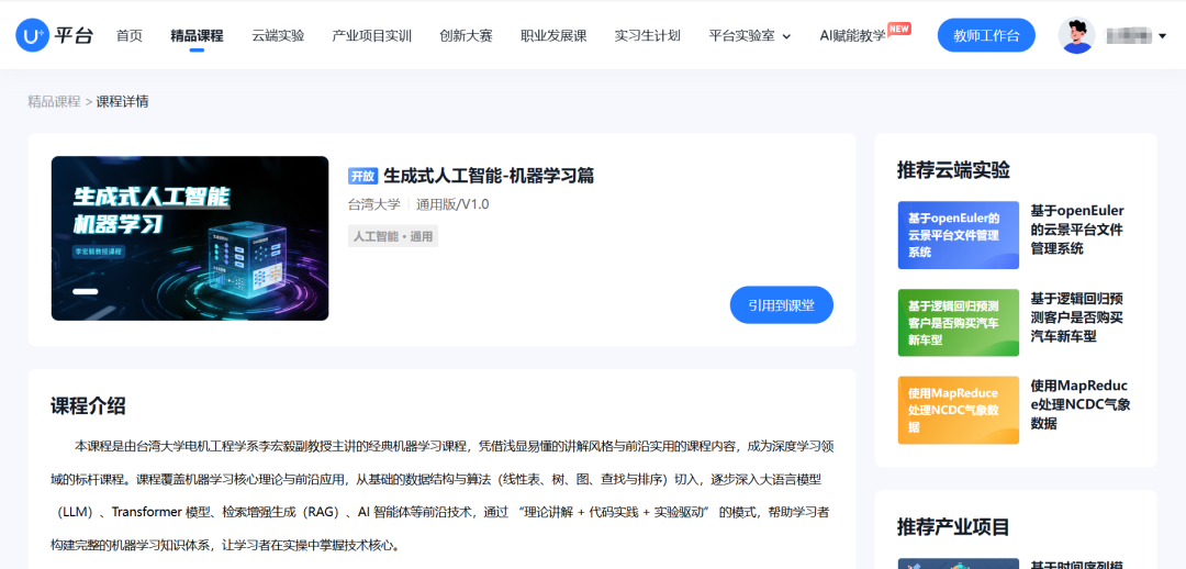 大模型与生成式AI正加速重塑产业格局,机器学习作为核心技术,已成为人才培养的关键支点。近日,台湾大学李宏毅副教授享誉全球的「机器学习标杆课」——《生成式人工智能-机器学习篇》课程正式上线青软U+平台,面向全国高校开放教学共享。