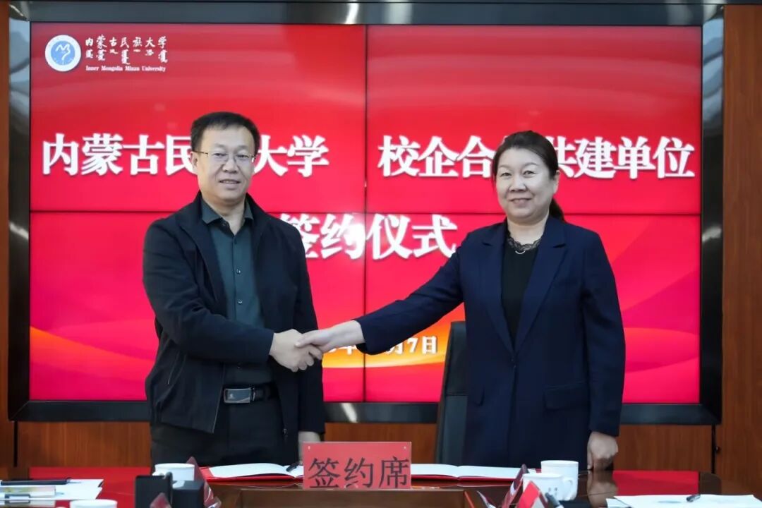 签约仪式上,内蒙古民族大学副校长红梅、青软集团总裁李战军作为校企双方代表,共同签署合作协议。内蒙古民族大学党委副书记王烨辉、教务处处长王泰,物理与电子信息学院党委书记李喜军、院长李培芳,青软集团校企合作部总监、内蒙古办事处总经理杨秀霞等相关领导共同见证。