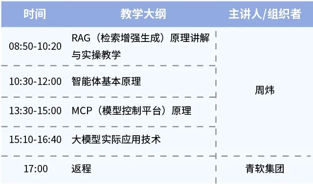 本次研修班将通过理论讲解、案例分析、实践操作等形式,聚焦大模型核心技术与产业应用,帮助专业技术人才系统掌握大模型原理、热门场景应用、本地部署实操、RAG技术落地、智能体开发等关键能力,实现个人技术素养与职业竞争力的双重提升,为行业高质量发展注入人才动力。