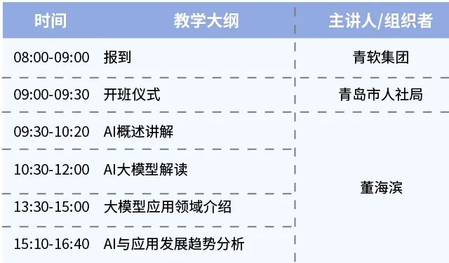 AI时代技术升级刻不容缓!山东省人社厅认证的青软集团《AI大模型技术与应用》高级研修班,11月7-9日青岛开课,报名已开启!