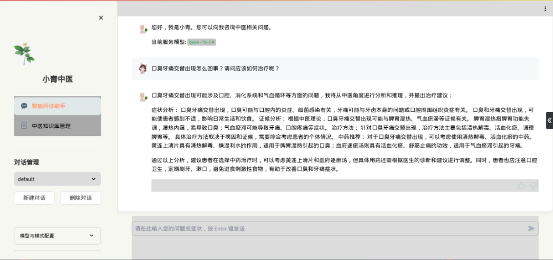 《基于LLM的中医智能问诊系统》实现了人工智能与传统医学的创新融合。在实际开发中,学生能够掌握ChatGLM3、Qwen等国产大模型的微调技术,同时深入理解中医辨证论治理论,通过Langchain框架整合中医典籍、临床案例等多源知识,利用Faiss/Chroma向量数据库实现病症与诊疗方案的精准匹配。这一过程中,技术开发能力与中医药知识体系形成互补,推动学生构建「AI 技术+传统医学」的跨界思维。
