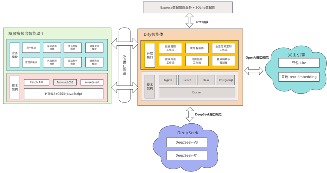 在实训过程中,学生们充分利用DeepSeek大模型,高效完成代码生成与优化,同时借助Dify平台自主搭建知识库与工作流,最终实现了个性化健康管理、糖尿病风险预测和在线医师咨询三大核心功能。