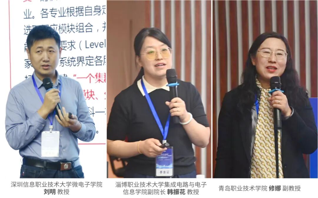 高职分论坛上,深圳信息职业技术大学微电子学院刘明教授、淄博职业技术大学集成电路与电子信息学院副院长韩振花教授、青岛职业技术学院修娜副教授,聚焦高技能人才培养,分别以《深信大半导体与集成电路全产业链人才培养探索与实践》《聚力教学关键要素改革 助推电子信息高技能人才培养》《产教融合驱动的高职集成电路岗位群贯通人才培养模式构建与实践》主题分享创新做法,为高职院校技能人才培养指明方向。