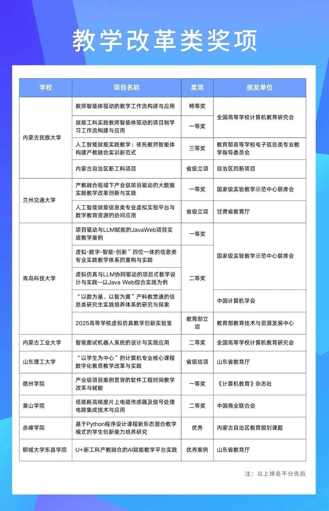 2025年,青软集团与合作高校聚焦人才培养模式创新、课程体系优化、数字化教学改革等关键环节,凝练优质成果,斩获多项省市级及国家级奖项,彰显双方教改实力。